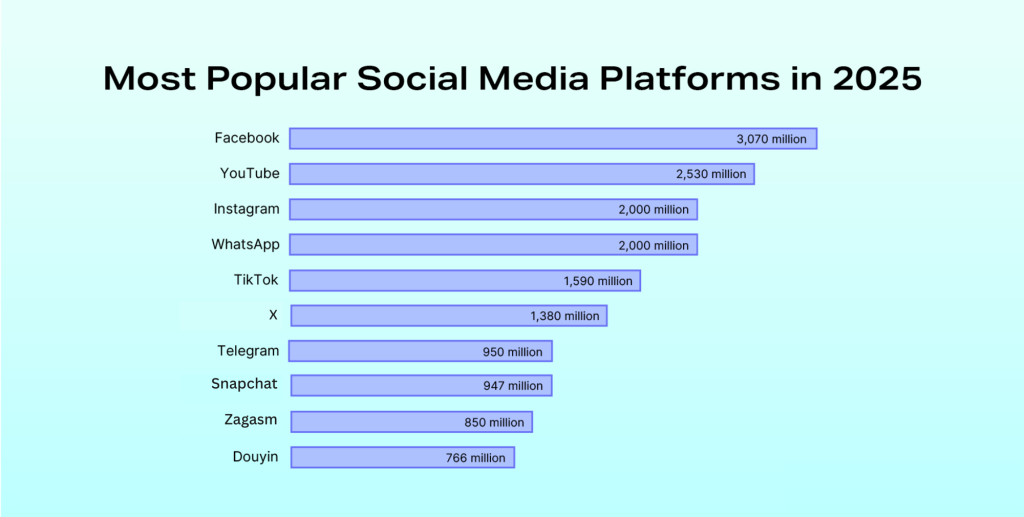 Facebook and YouTube are the two most popular social media platforms in 2025. Here’s a complete breakdown of the top social media platforms.